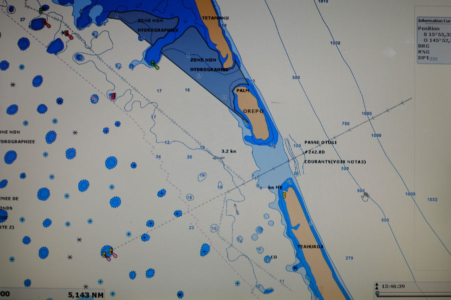 The sail from the Marquise typically takes 3 to 4 days reaching in the trade winds. It is best to plan your arrival for daylight and tides to make the passes easier to handle. Passes are best crossed at low tide or just at the start of the incoming tide. During outgoing tides some passes become dangerous with standing waves and turbulence. This means knowing when the tide will change! The rule to apply is that high-tide is generally around midday. However when the sea swell is big it’s possible to have an outgoing tide for several days, while the lagoon empties of all the water that the waves push over the reefs.